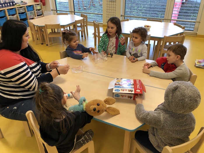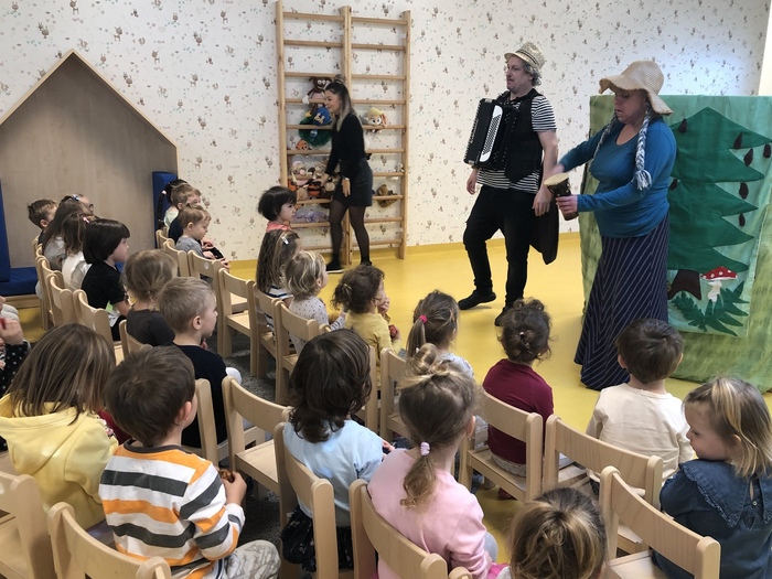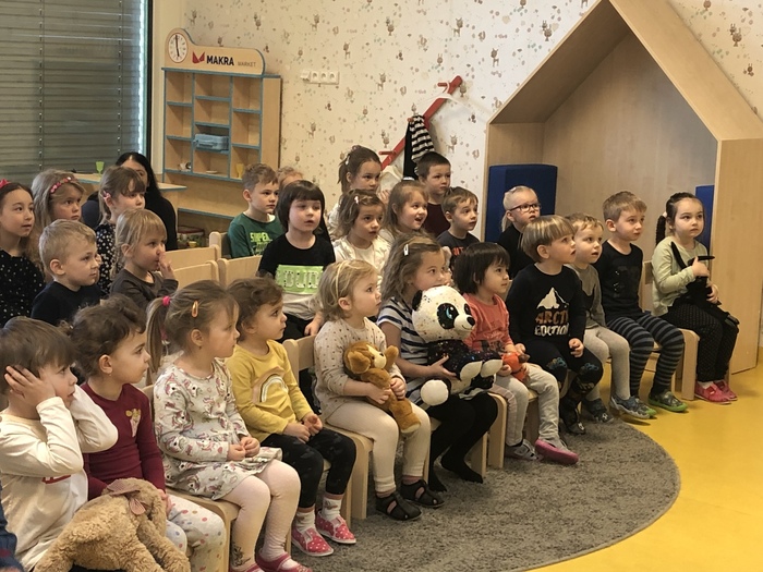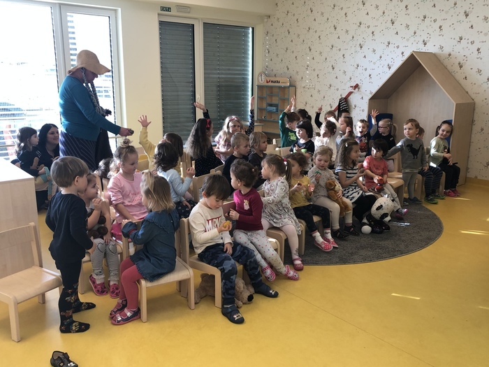 Tento týden se naše školka proměnila v divadlo a my si užili představení O Budulínkovi. Úžasní herci nás do pohádky zapojili - zpívali a hráli jsme na rumba šišky. Budulínka jsme naštěstí našli a vysvobodili, takže jsme v dalších dnech mohli v klidu vyrábět sněhuláky, zpívat, tančit a užívat si kamarádů.